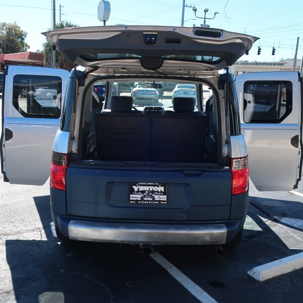 THIS 2005 HONDA ELEMENT EX 4D SUV 108,026 MILES 4-CYL, VTEC, 2.4 LITER, 2WD Features AC, Automatic Transmission, Cruise Control, Roof Rack, Running Boards, Tow Pkg, Power Steering, Power Windows, Power Door Locks, Tilt Wheel, AM/FM Stereo, CD, Dual Front Air Bags, ABS (4 Wheel),16" Alloy Wheels. Check out our 360 degree high definition video of each video. You'll be glad you did! WWW.YERTONAUTOS.COM Contact at yerton@tampabay.rr.com ***PRINT THIS AD AND BRING IN TO KRIS YERTON TO RECEIVE THIS SPECIAL INTERNET PRICE SAVINGS! THESE PRICES ARE SET FOR A GREAT DEAL AND NO HAGGLE EXPERIENCE. THIS OFFER IS LIMITED AND SUBJECT TO THIS CAR STILL BEING ON THE LOT, SO HURRY!*** GET PRE-APPROVED ONLINE AT WWW.YERTONAUTOS.COM - WHILE VISITING OUR WEBSITE, CHECK OUT OUR ENTIRE INVENTORY, AND VIEW ADDITIONAL PHOTOS OF EVERY VEHICLE, THEN LET US KNOW HOW WE CAN SATISFY YOUR VEHICLE NEEDS!